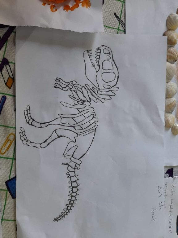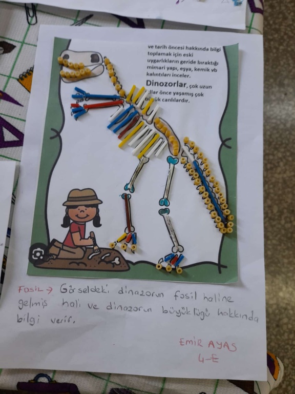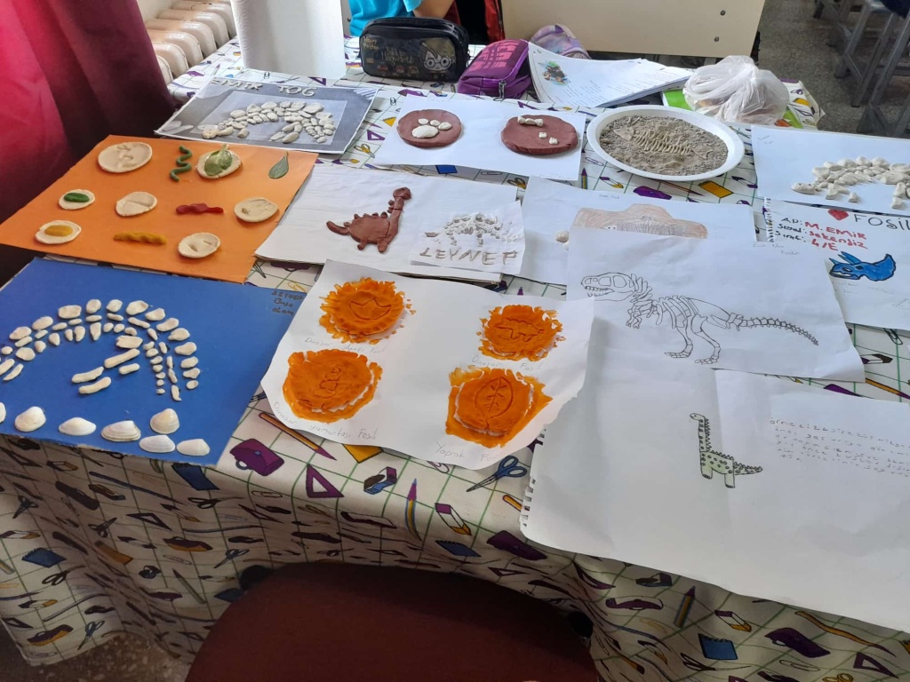 4/E sınıfı öğrencileri, öğretmenleri Zeliha Aslan koordinesinde oyun hamuruna objelerin izini çıkararak alçı ile fosillerin oluşumunu uygulamalı olarak öğrendiler.