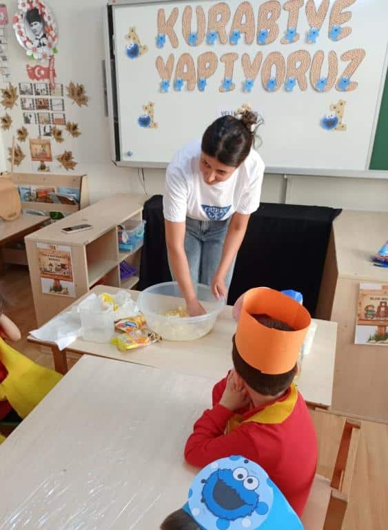 Çocuklarımızın kas gelişimlerini desteklemek için onlar için keyifli alanlar oluşturmaya çalışıyoruz. Bu keyifli alanlara velilerimizi de ortak etmeyi seviyoruz. Okul aile iş birliği çocuklarımız için her zaman dikkat ettiğimiz bir nokta oluyor. Bu hafta da katılım sağlayan velimiz çocuklarımızla lezzetli kurabiyeler yaptı. Birlikte hem eğlendik hem öğrendik hem de minik kurabiyelerimizi sevdiklerimize ikram ettik.